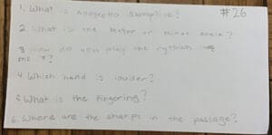 - As an assessment tool to evaluate how much students have retained about learning to approach a new piece.